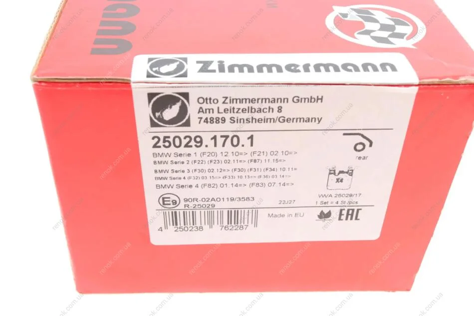 Колодки гальмівні (задні) BMW 1 (F20/F21)/ 3 (F30/F31/F34) 11- (Brembo) B37/B47/N13/N47/N55 ZIMMERMANN 25029.170.1 (34216855474, 34216876422, 34212284766)