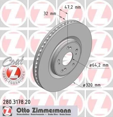Диск гальмівний ZIMMERMANN 280.3178.20 (45251TL0G50, 45251TL0G51)