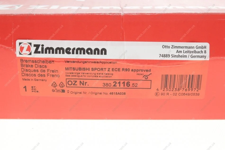 Аналоги "380.2116.52 ZIMMERMANN":
