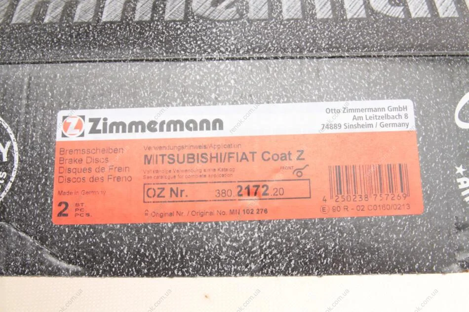 Диск гальмівний ZIMMERMANN 380.2172.20 (mn102276, 6000609712, 4615a147)