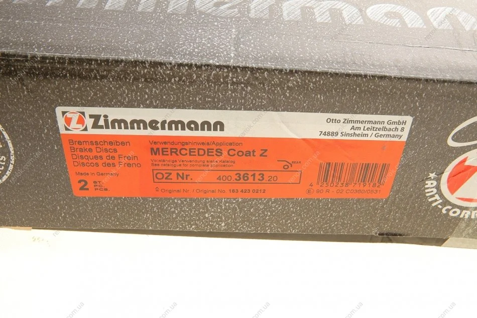 Диск гальмівний ZIMMERMANN 400.3613.20 (1634230212, 1634230012, A1634230212)