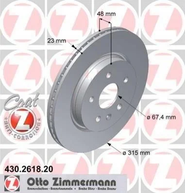 Диск гальмівний Coat Z ZIMMERMANN 430.2618.20 (13502199, 13501303, 569062)