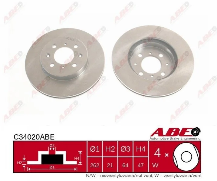 Гальмівний диск ABE C34020ABE (45251SK3E00, 09545720)