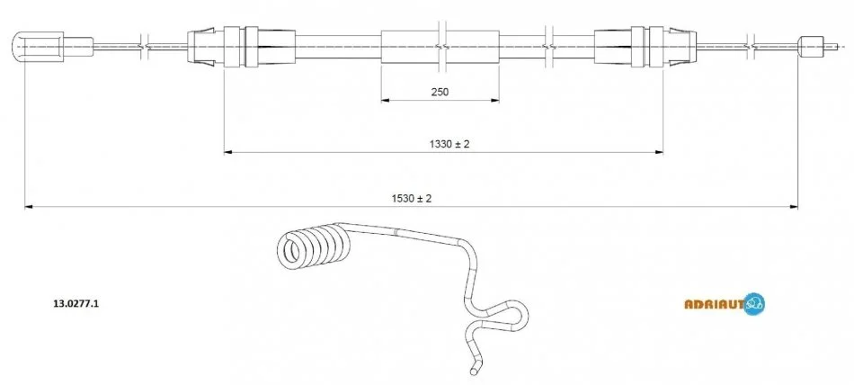 FORD Трос стоянкового гальма (для здвоєних шин) TRANSIT Платформа/шасі (FM_ _, FN_ _, FF_ _) 2.2 TDCi 4x4 11- ADRIAUTO 13.0277.1 (1371469, 1388280, 1441580)