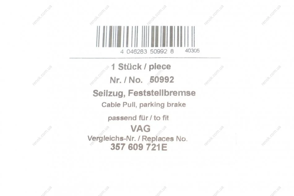 Трос ручного гальма AIC 50992 (357609721E, 357609721D, 357609721A)