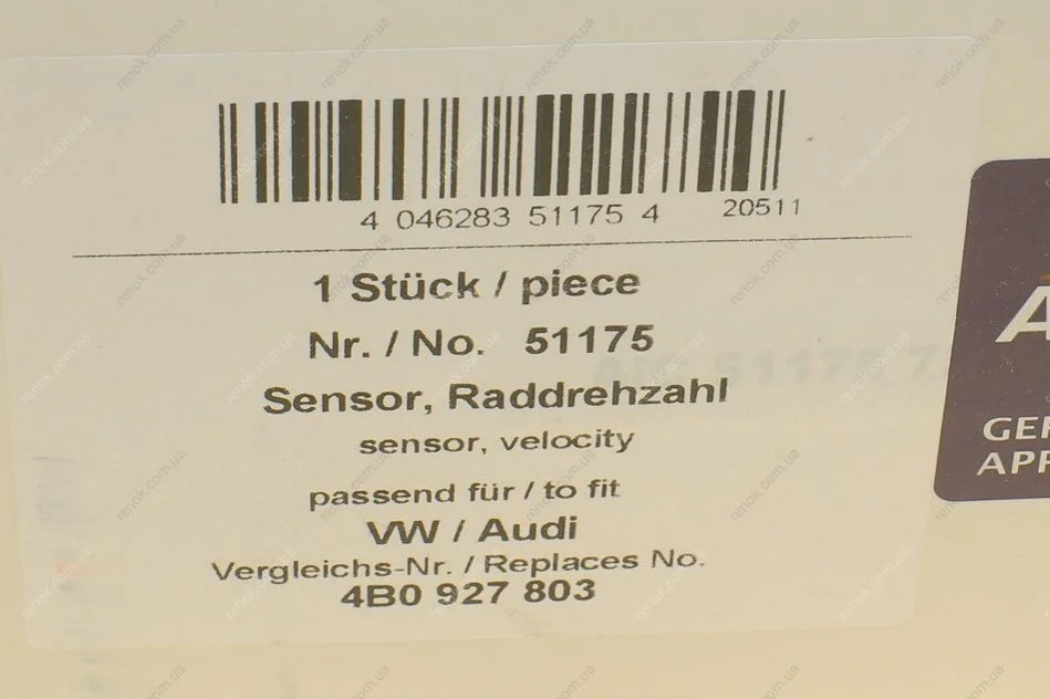 Датчик частоты вращения колеса (передний) Audi A6 1.8-2.8 97-05 AIC 51175 (4B0927803)