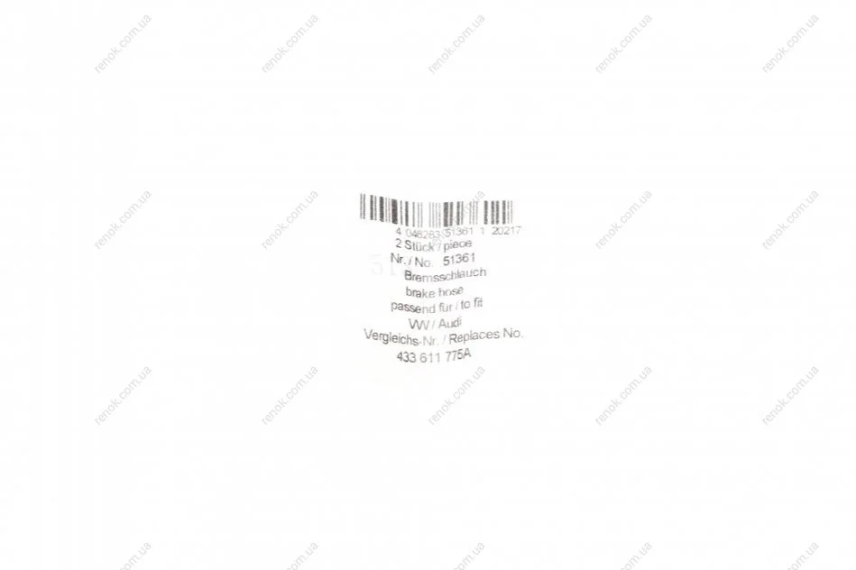 Шланг тормозной (задний) Audi 80/100/A6/VW Passat/T3 1.6-2.2 -97 (L=220mm) AIC 51361 (433611775A, 175611775, 321611775)