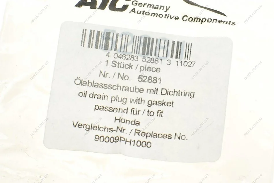 Болт слива масла + шайба Hyundai Accent/Kia Rio/Mitsubishi Lancer/Suzuki Grand Vitara 90- (M14x1.5) AIC 52881 (0009907417, 031137, 31137)