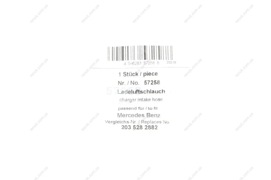 Патрубок интеркулера MB C-class (W203/S203) 2.2CDI-2.7CDI 00-08 (OM646/OM612) AIC 57258 (2035282882, 2035281482, A2035282882)