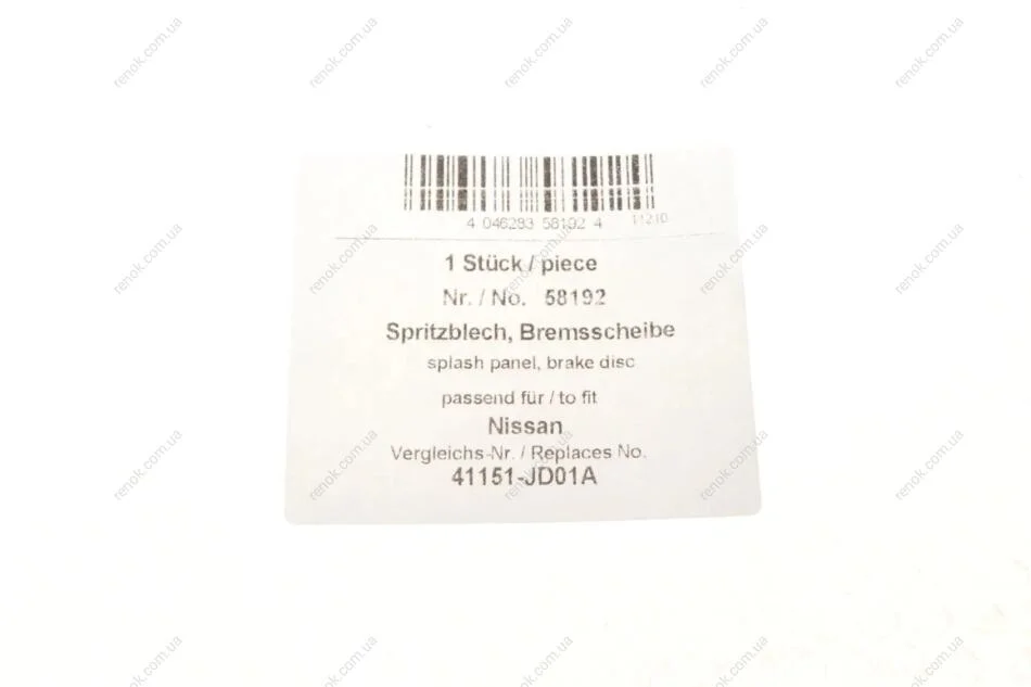 Защита диска тормозного (переднего) (R) Nissan Qashqai 07-14 AIC 58192 (41151JD01A, 41151JG00A, 41151JU00A)