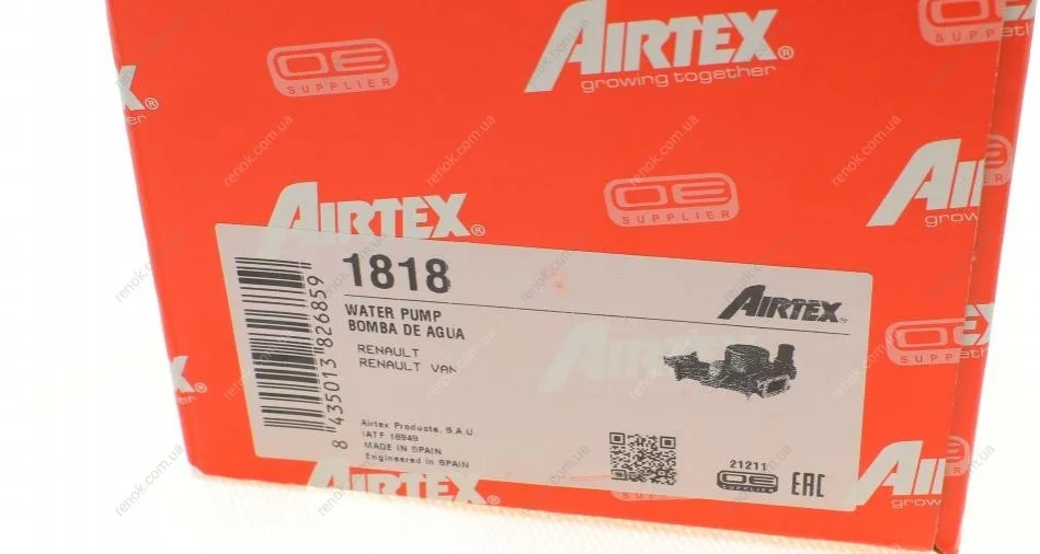 Водяной насос AIRTEX 1818 (210103314R, 7701478924, 2101000Q0L)
