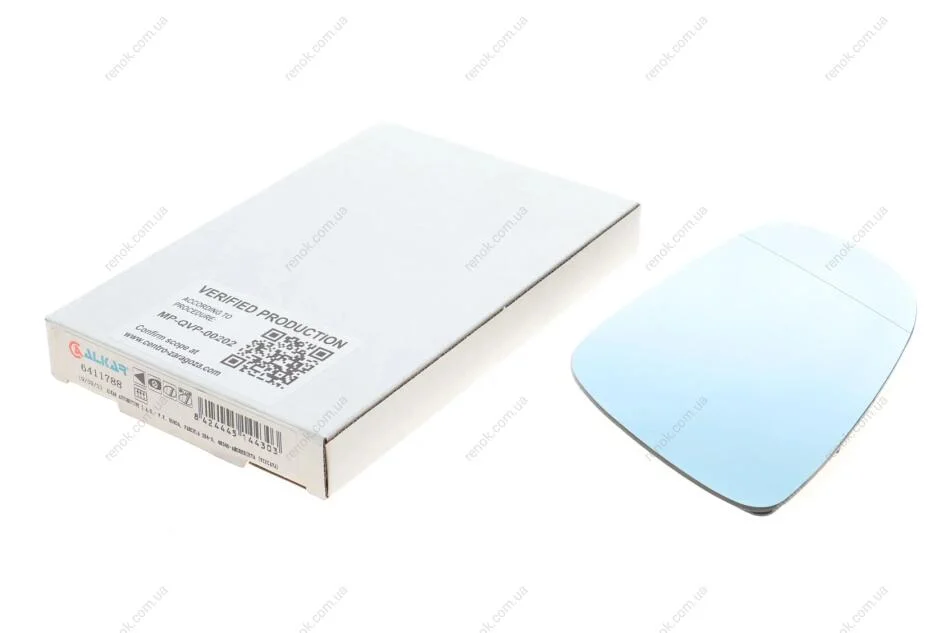 Вкладыш зеркала левый, асферический, голубое, + обогрев ALKAR 6 411 788 (4E0857535E, 8D0857535E, 4E0857535B)