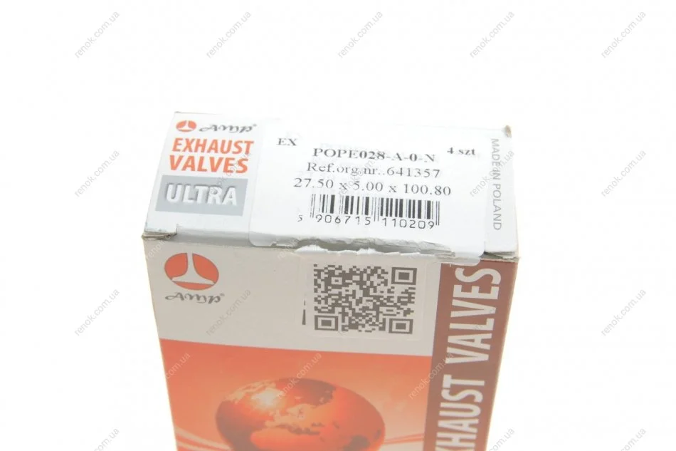 Клапан Opel Astra G/H/Vectra B/Zafira A 1.8 16V 95-10 (27.5x5x100.8) (азотированный) AMP POPE028-A-0-N