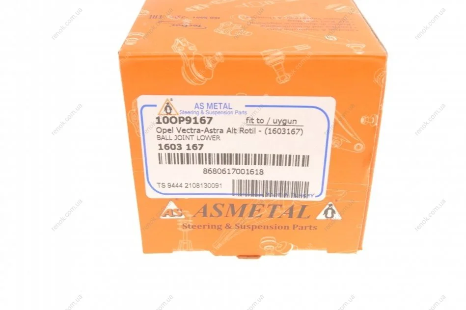 Опора шаровая (передняя/снизу) Opel Astra F 91-99/Vectra A 88-95 ASMETAL 10OP9167 (1603121, 1603163, 1603167)