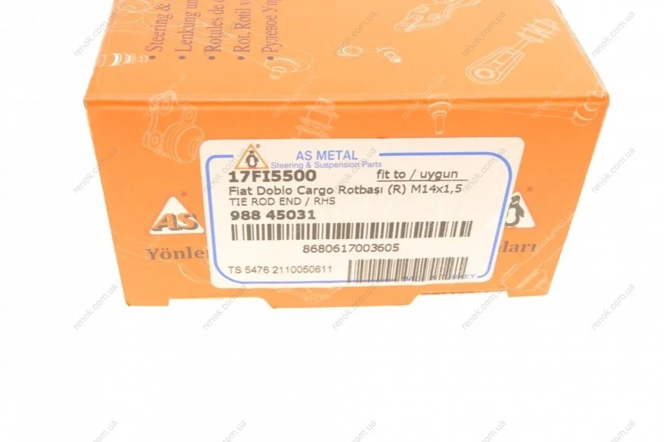 Наконечник рулевой тяги (R) Fiat Doblo 01- ASMETAL 17FI5500 (98845031)