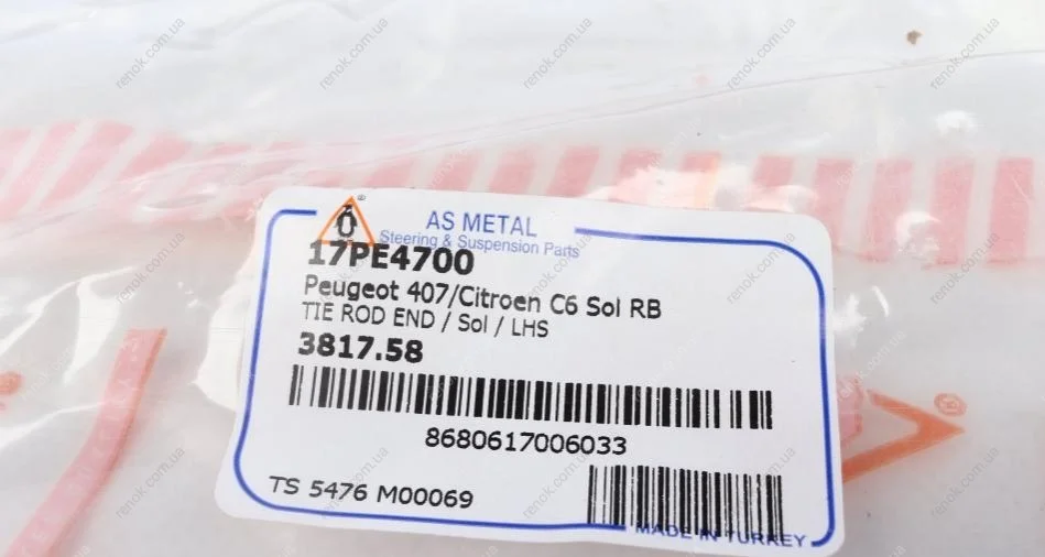 Наконечник рулевой тяги (L) Peugeot 407 1.6-3.0 04-10 ASMETAL 17PE4700 (381758)