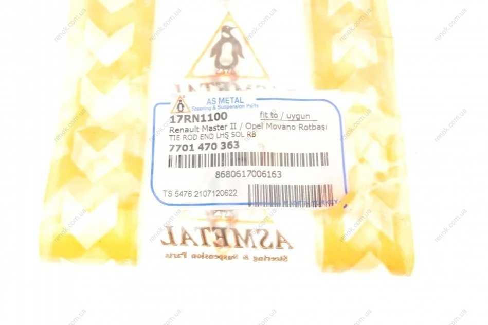 Наконечник рулевой тяги (L) Renault Master 98- ASMETAL 17RN1100 (7701470363, 4501262, 4852000QAH)