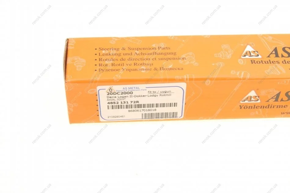 Тяга рулевая Renault Logan II/Dacia Dokker 0.9-1.6 12- (L=193mm) ASMETAL 20DC2000 (485213172R, 485211105R)