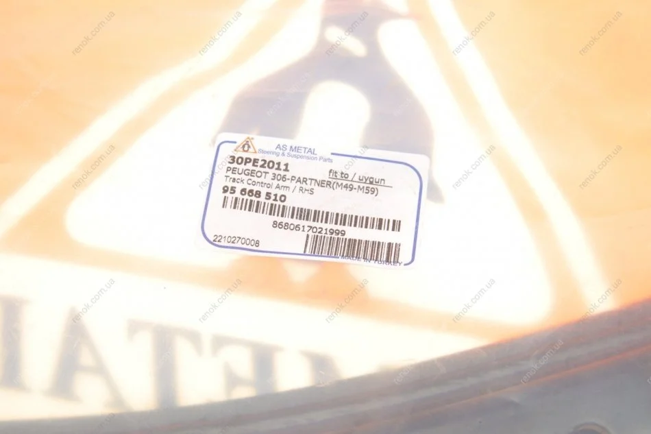 Рычаг подвески (передний/снизу) (R) Citroen Berlingo/Peugeot Partner 1.1-1.9D 96- (без шаровой) ASMETAL 30PE2011 (1614447780, 352168, 352169)