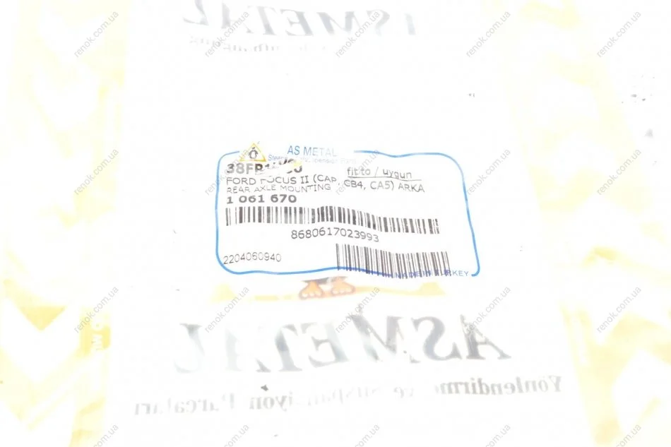 Сайлентблок рычага (заднего/спереди) Ford Focus/C-MAX/Kuga/Volvo C30/C70 II/S40 II 98- (продолж.) ASMETAL 38FR1700