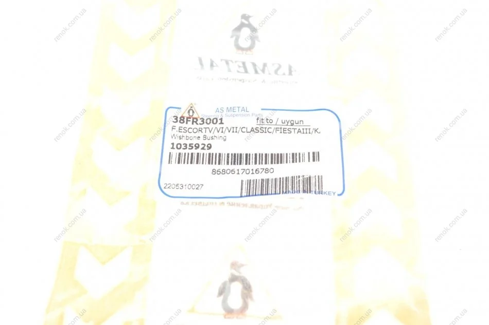 Сайлентблок рычага (переднего/снизу/сзади) Ford Escort/Fiesta 87-08 ASMETAL 38FR3001 (1035929, 91AB3A262AA)