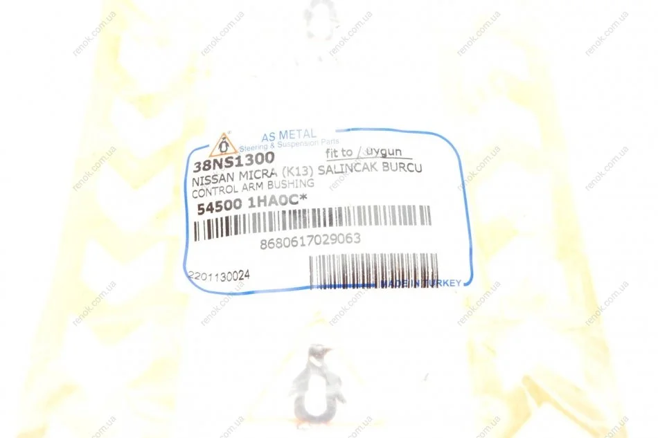 Сайлентблок рычага (переднего/сзади/снизу) Nissan Micra IV 10- ASMETAL 38NS1300 (545001HA0C, 545001HA0CSK, 545001HA5A)