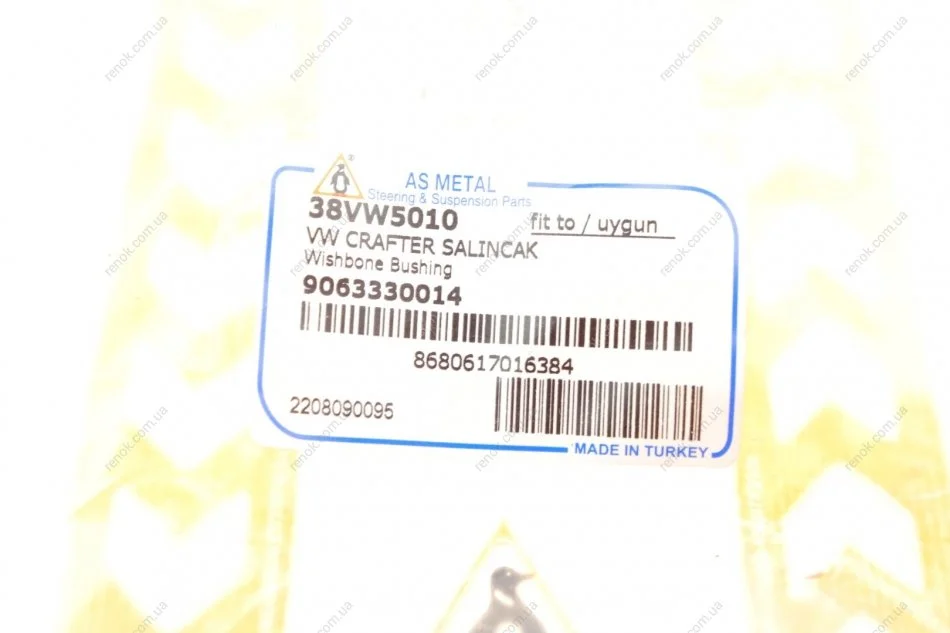 Сайлентблок рычага (переднего/спереди) MB Sprinter/VW Crafter 06- ASMETAL 38VW5010 (9063330014, 9063330114, 2E0407523A)