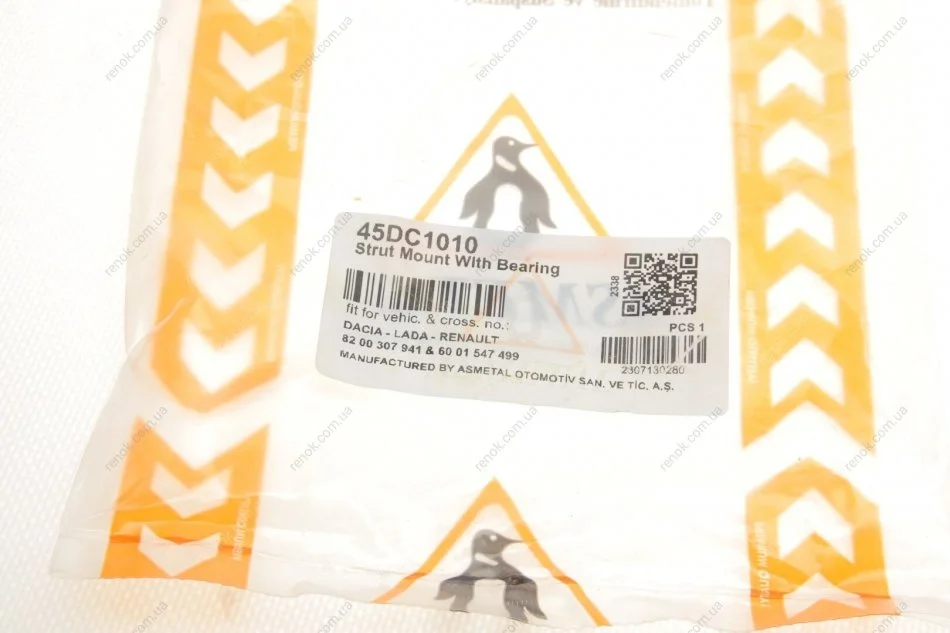 Опора амортизатора перед. Logan 04-/Duster 10-/Sandero 08- (с подшипником) ASMETAL 45DC1010 (6001025850, 6001547499, 7700800107)