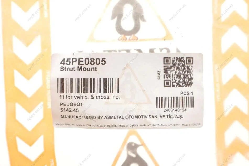 Опора амортизатора заднього Peugeot 307 00- ASMETAL 45PE0805 (514245)