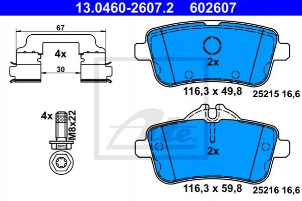 Комплект тормозных колодок, дисковый тормоз ATE 13.0460-2607.2 (0064203520, 0064206320, 0074208620)