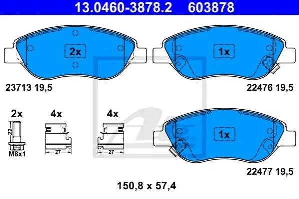 Гальмівні колодки, дискові ATE 13046038782 (77367923, 77368553)
