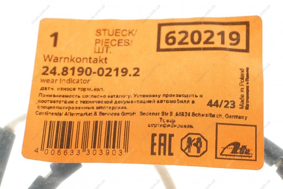 Сигнализатор, износ тормозных колодок ATE 24.8190-0219.2 (34351163065, 34352229018)