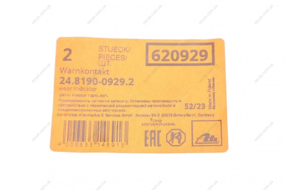 Сигнализатор, износ тормозных колодок ATE 24.8190-0929.2 (7L0907637, 95561236500)