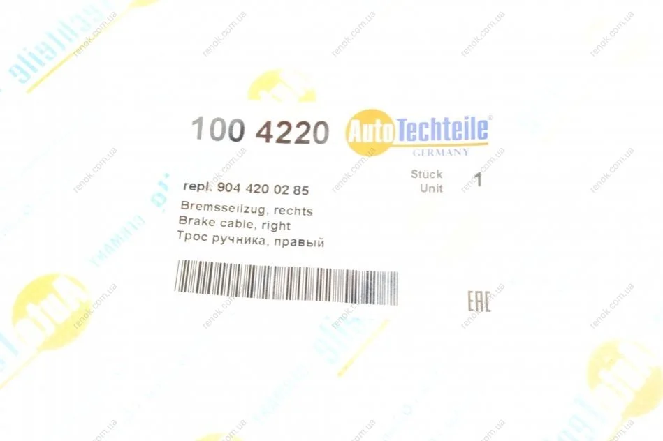 Трос ручника (R) MB Sprinter 408-416/VW LT 46 96- (4220) AUTOTECHTEILE 100 4220 (9044200285)
