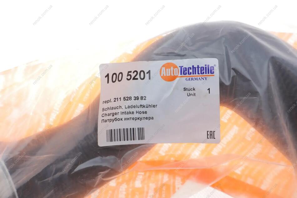 Патрубок інтеркулера з фітингами, армований, матеріал гума AUTOTECHTEILE 100 5201 (2115283982, 2115281682)