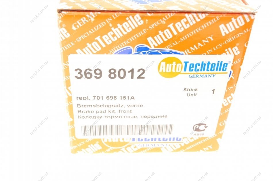 Колодки гальмівні AUTOTECHTEILE 369 8012