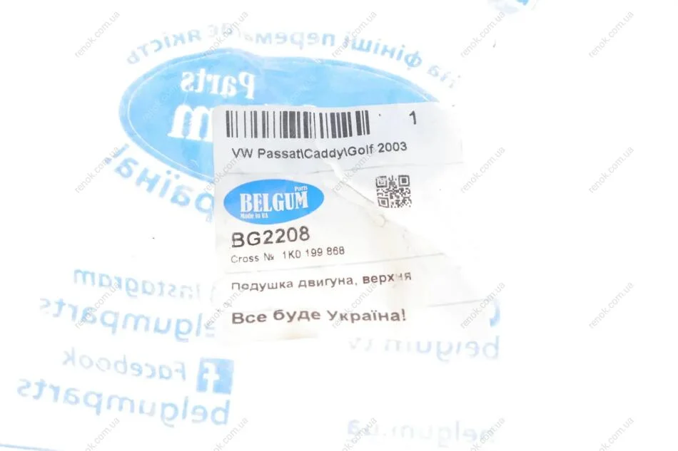 Подушка двигуна, верхня SKODA OCTAVIA A5. VW GOLF V. CADDY 03- BELGUM PARTS BG2208