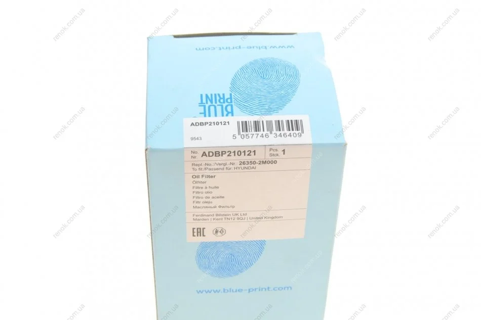 Фільтр масла з ущільнюючим кільцем BLUE PRINT ADBP210121 (263502M000)