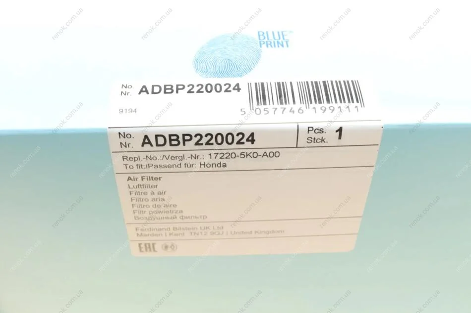 Фільтр повітряний BLUE PRINT ADBP220024