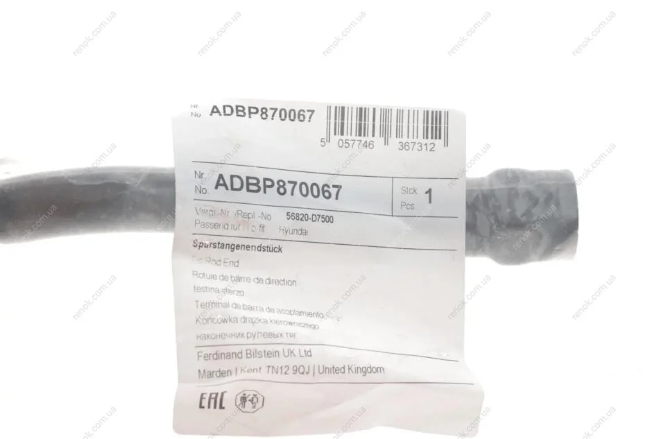 Наконечник рульової тяги з стопорною гайкою і шплінтом BLUE PRINT ADBP870067 (56820C1000, 56820D3000, 56820D3500)