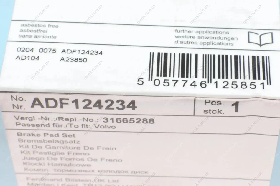 Колодки тормозные BLUE PRINT ADF124234 (31400527, 31400528, 31445975)
