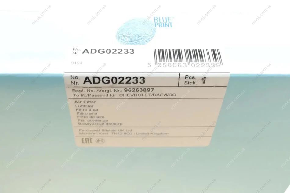 Фильтр воздушный Chevrolet Rezzo/Tacuma 1.6-2.0i 00- BLUE PRINT ADG02233 (96263897)