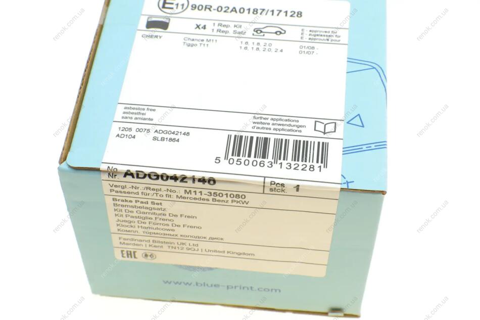 Колодки тормозные (передние) Chery A3/M11/Tiggo/Niche 1.6-2.0 08- BLUE PRINT ADG042148 (113501080, A113501080, M113501080)
