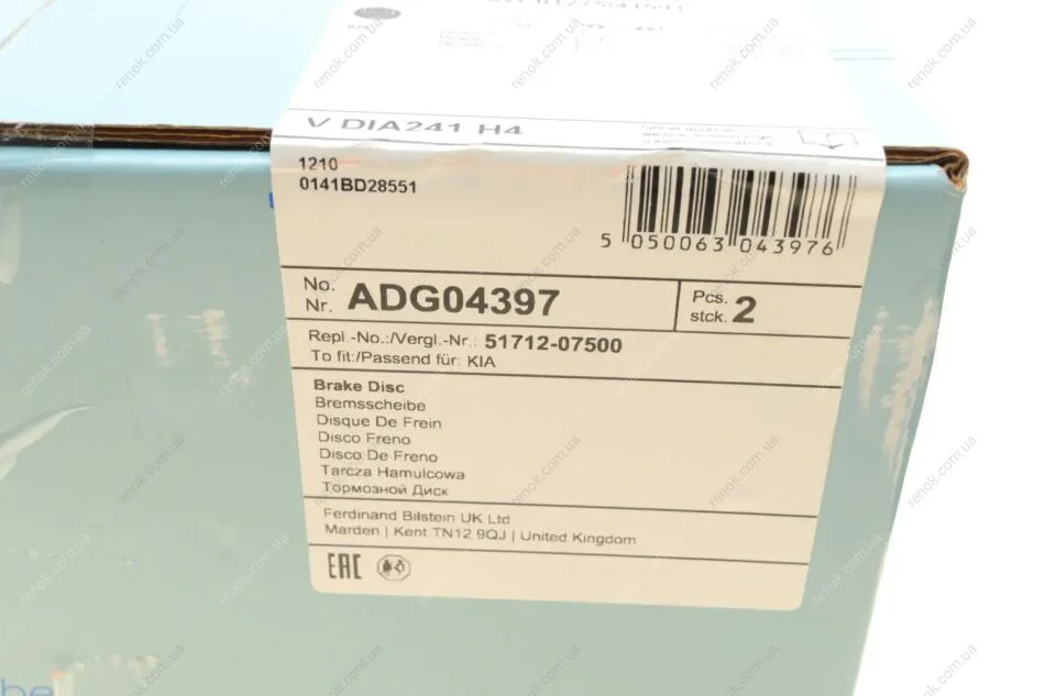 Диск тормозной передний KIA BLUE PRINT ADG04397 (517120X500, 5171207500, 5171207000)