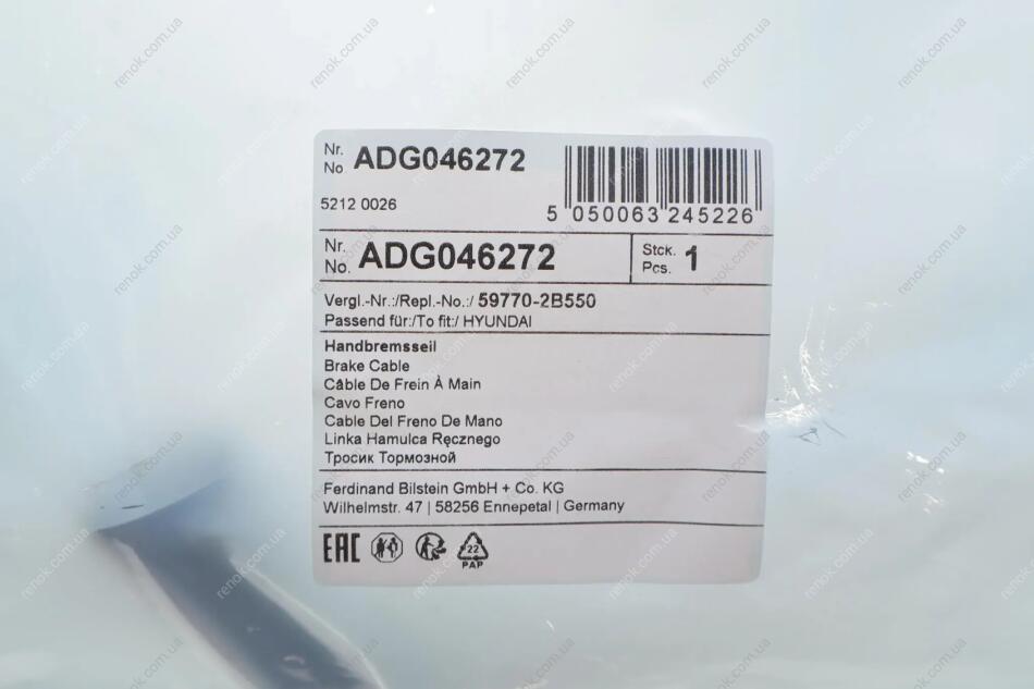 Трос ручного тормоза BLUE PRINT ADG046272 (597702B550DS, 597702B550)
