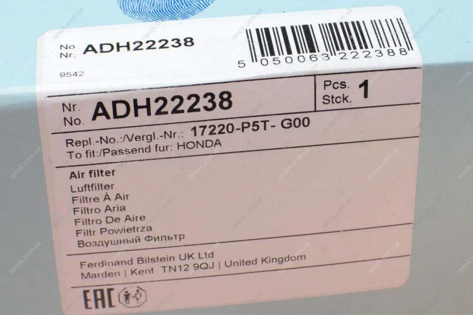 Фильтр воздушный Honda Accord/Civic 2.0TDi 96-02 BLUE PRINT ADH22238 (esr4103)
