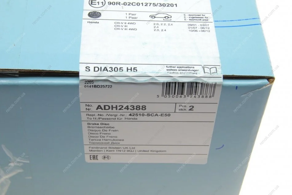Диск тормозной (задний) Honda CR-V 01- (305x9) BLUE PRINT ADH24388 (42510S9AE50, 42510SCAE50, 42510SWA000)