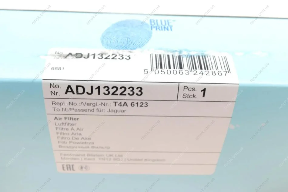 Фильтр воздушный Land Rover Range Rover Velar 3.0D/5.0 17-(R) BLUE PRINT ADJ132233 (gx739601aa, t4a6123, lr092246)