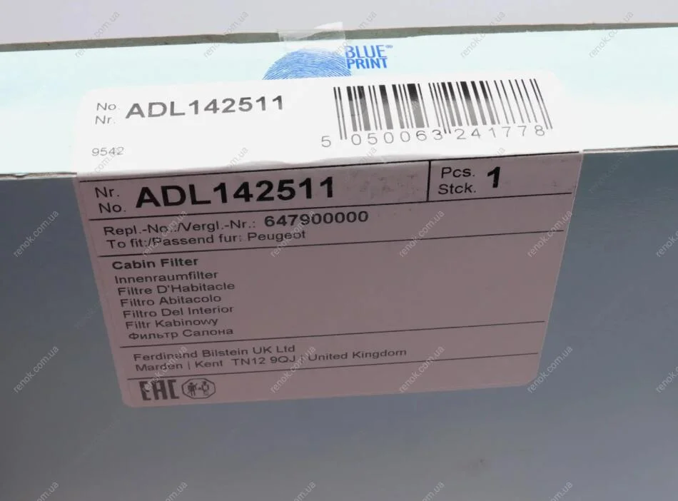 Аналоги "ADL142511 BLUE PRINT":