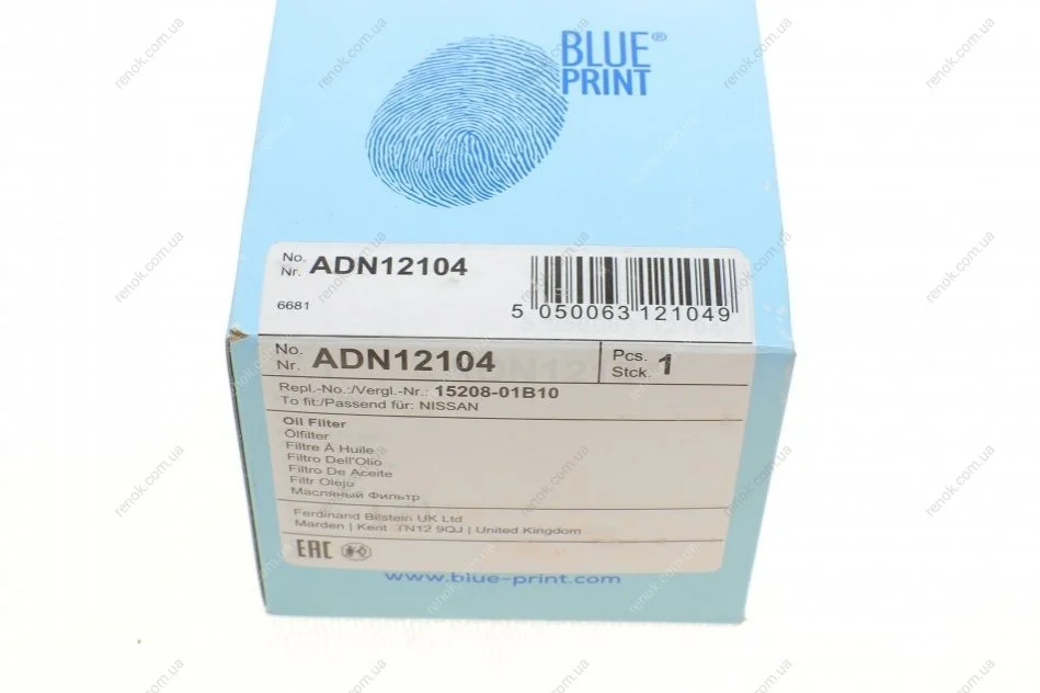 Фильтр масляный Nissan Micra 1.0/1.2 82-92/Pathfinder 3.0 86-95 BLUE PRINT ADN12104 (1520801B02, 1520801B10, 1520801B01)